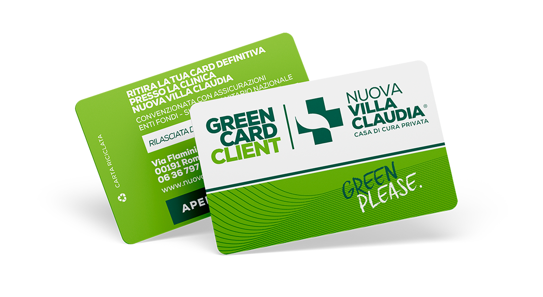 La nostra nuova GREEN CARD viene rilasciata ai nostri più fedeli pazienti e da diritto a ricevere uno sconto del 10% su visite ed esami diagnostici.