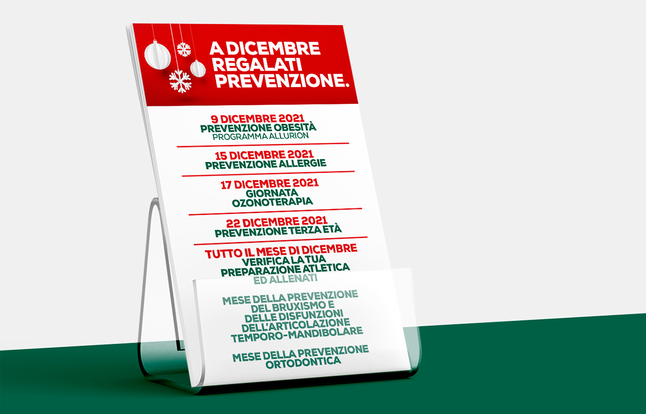 Anche a dicembre la prevenzione continua con i pacchetti Allergia, Obesità, Ozonoterapia, Terza Età, Bruxismo, ortodontica e di Preparazione allo Sci....